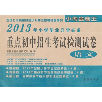 《2013年重点初中招生考试检测试卷》由名牌学校试题研究组编写,合理的编排,卓越的品质,是这套试卷连续五年销量稳居小升初试卷畅销榜前列的保证。这套试卷由三部分内容组成,基础卷部分汇集全国有代表性的小升初试卷8套,提高卷部分精选重点初中招生考试试题8套,强化卷部分模拟名牌小学毕业升学试卷5套,快速提高学生实战能力。
