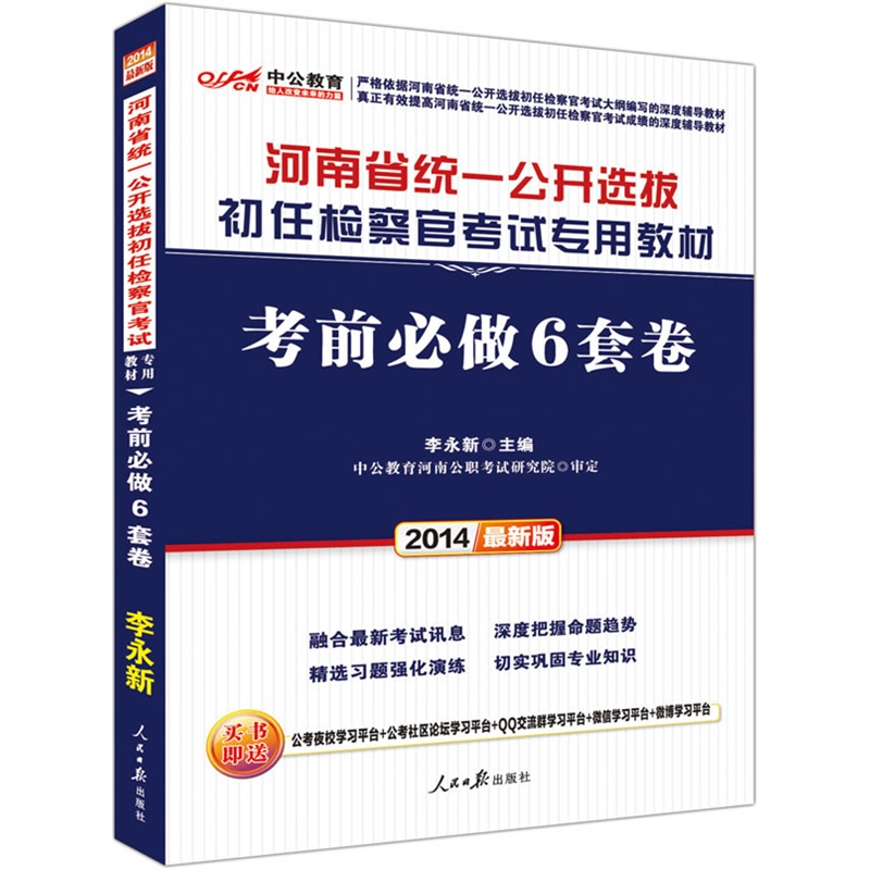 中公最新版2014河南省统一公开选拔初任检察官考试专用教材:考前必做6套..