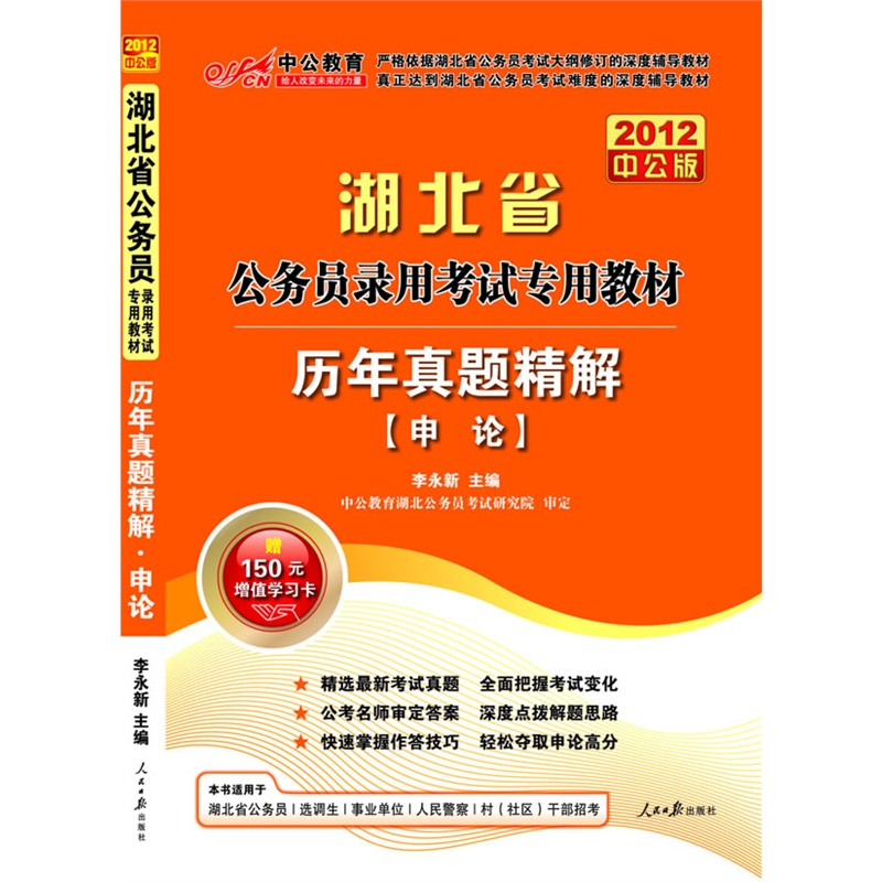 2012中公版湖北公务员考试-历年真题精解申论(赠送价值150元的图书增值卡..