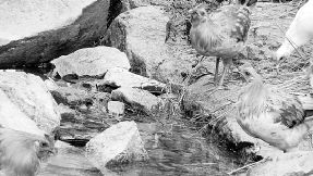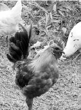 山里有两眼清泉,鸡跑累了,就会自己到泉边喝水,喝饱了,又接着追逐或蹦跳。