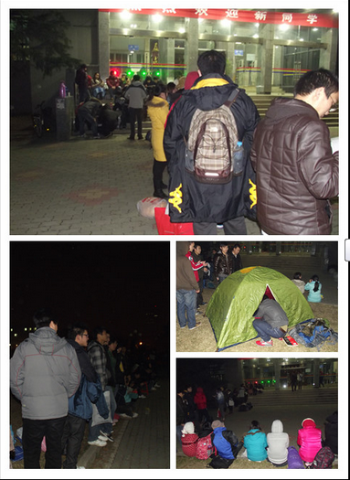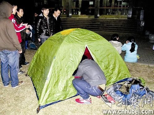 华科考研学子寒夜扎帐篷排队抢占自习室座位