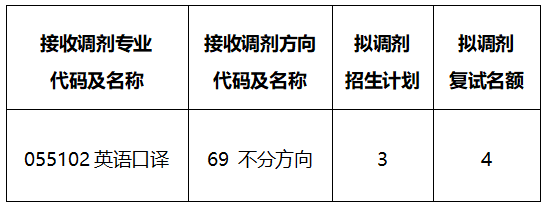 (二)接受考生调剂的第一志愿专业范围:一志愿报考我校国际翻译学院055101英语笔译专业,复试成绩合格但未被一志愿拟录取的优秀生源。除以上专业外,不接受其他专业的考生调剂。