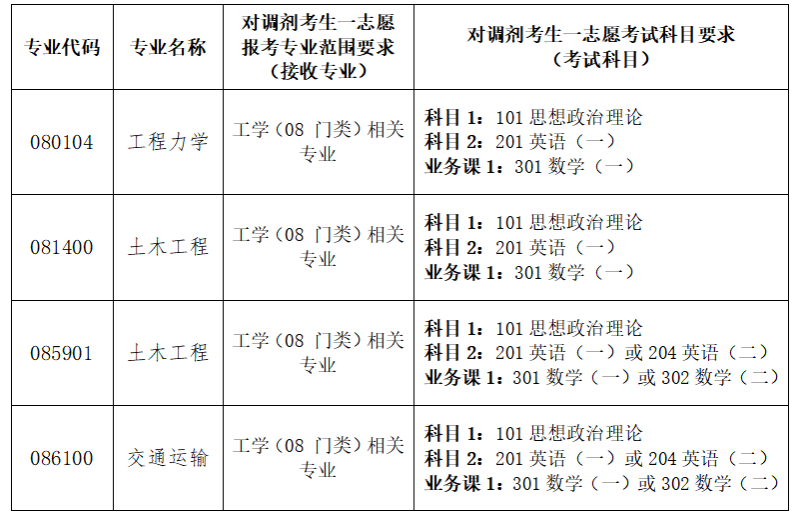 注:第一志愿专业范围以“全国硕士研究生招生调剂服务系统”(以下简称“全国调剂服务系统”)为准。各专业初试科目要求以全国调剂服务系统为准。