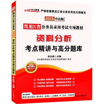 《中公教育·黑龙江省公务员录用考试专项教材:资料分析考点精讲与高分题库(2013中公版)》以能力为主线,考点全讲解、以实用为核心,技巧全攻略、以题库为助力,资料分析全攻克。