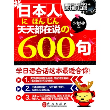 由小池多津编著的《日本人天天都在说の600句》全部的汉字都上加上假名注音和罗马拼音,所以对初学者来说,相当地浅显易懂。