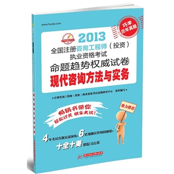 1.《现代咨询方法与实务》严格按照2013年全国注册咨询工程师(投资)执业资格考试大纲的要求编写,将大纲涉及知识点和重要考点列成清单,一目了然,便于考生对照复习,了解考试重点;2. 《现代咨询方法与实务》提供4年历年真题及解析,能帮助考生迅速熟悉考试题型、掌握命题规律、提高解题能力,达到事半功倍的复习效果;3.《现代咨询方法与实务》分析预测了2013年咨询工程师(投资)执业资格考试的命题趋势,能巩固加强考生对考点的掌握、顺利过关。4.开通作者答疑QQ,配合读者的复习备考,随时为考生答疑解惑。