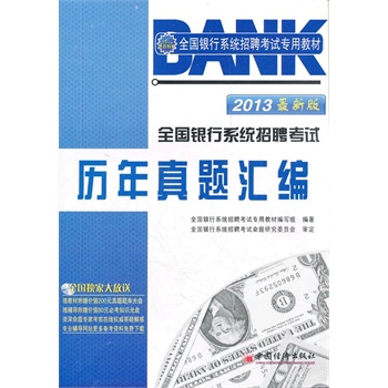 《2013全国银行系统招聘考试专用教材:全国银行系统招聘考试历年真题汇编(最新版)》由全国各银行招聘考试一线命题专家亲自操笔,完全按照银行招聘考试命题思想与最新命题趋势编撰。以简练的行文体例、实用的知识要点、精选的历年真题、权威的专家详解为基本特色,采用课堂式的讲解方式,教会考生获得高分的技巧。
