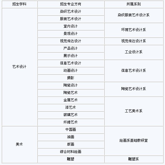 2010年我校招收在职人员攻读艺术硕士(Master of Fine Arts,缩写MFA)专业学位研究生50名。招生学科领域包括:艺术设计、美术,旨在培养具有系统专业知识和高水平艺术设计和美术创作能力的高层次、实践型专门人才。
