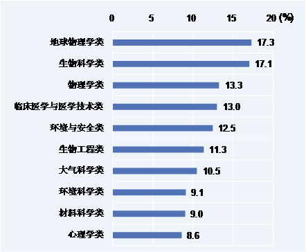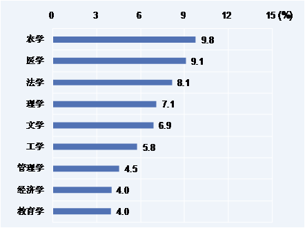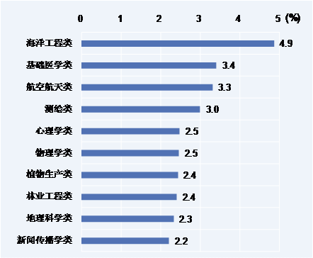图 被调查2011届本科生计划国内读研比例较高的10个专业类