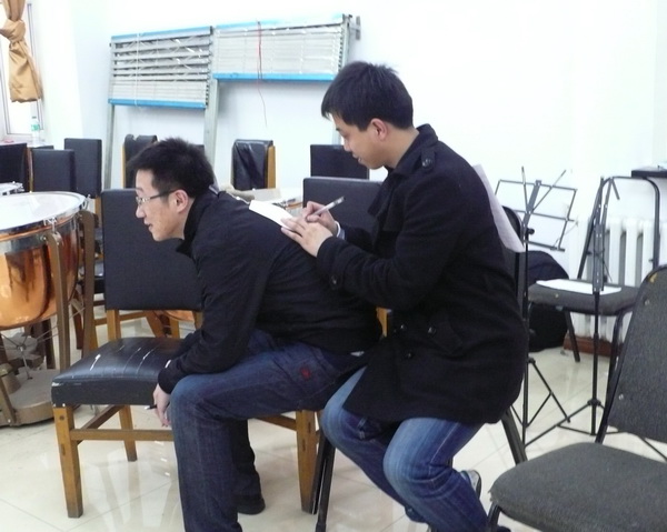 沟通从相识开始,借着一分钟握手,老师给大家详细讲解了在职场中应注意的电话、介绍、行进、座次等礼仪。相似圈和超级访问建立了大家的初步印象,搭桥过河和拥挤的公交车让大家体会到了团队合作的力量,研究生生活拼图和生涯幻游引导大家回顾研究生生活、展望未来职业生涯。在团队训练中,有这样一个环节,就是每位学生在自己的背后贴上一张纸,其他学生要在这张纸上为他写上一句话,结尾必须是“我是你坚强的后盾”。这看似简单的一句话却蕴含了学生们对即将结束的研究生生活的眷恋,也表达了他们对同伴的祝福和支持。学生们围成一圈,他们眼神专注,一笔一画地在伙伴的背上写下美好的祝愿,也注入了美好的希望。