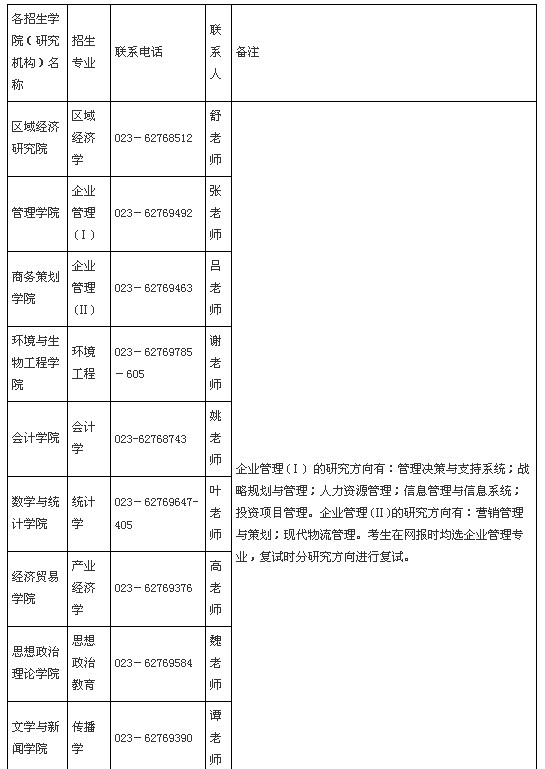 研招办咨询电话:023-62769448