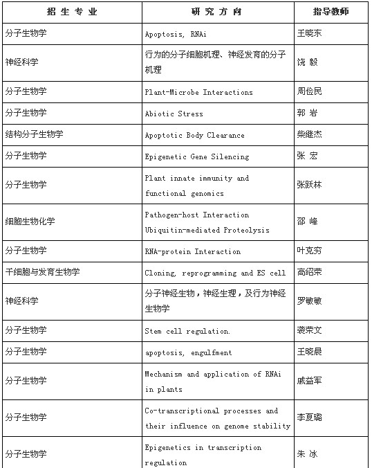 面向全国有推荐免试资格的高校招收推荐免试研究生(北京生命科学研究所对中国农业大学生物学院的学生单独组织面试、单独招生,生物学院的学生需提供本简章要求的申请材料,并在面试前递交研究所研究生部)。