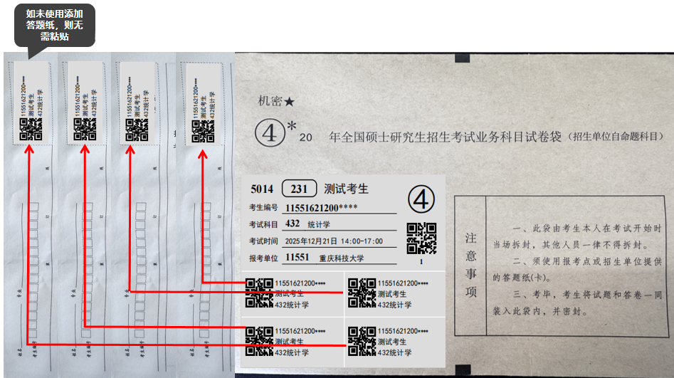 欢迎报考我校硕士研究生。2026年全国硕士研究生招生考试(初试)将于2025年12月20日正式开考。请注意,凡参加重庆科技大学自命题科目考试的考生,均需在答题纸指定位置规范粘贴科目条形码。为帮助各位考生顺利完成考试,现将自命题科目答题规范及试卷二维码粘贴要求说明如下。