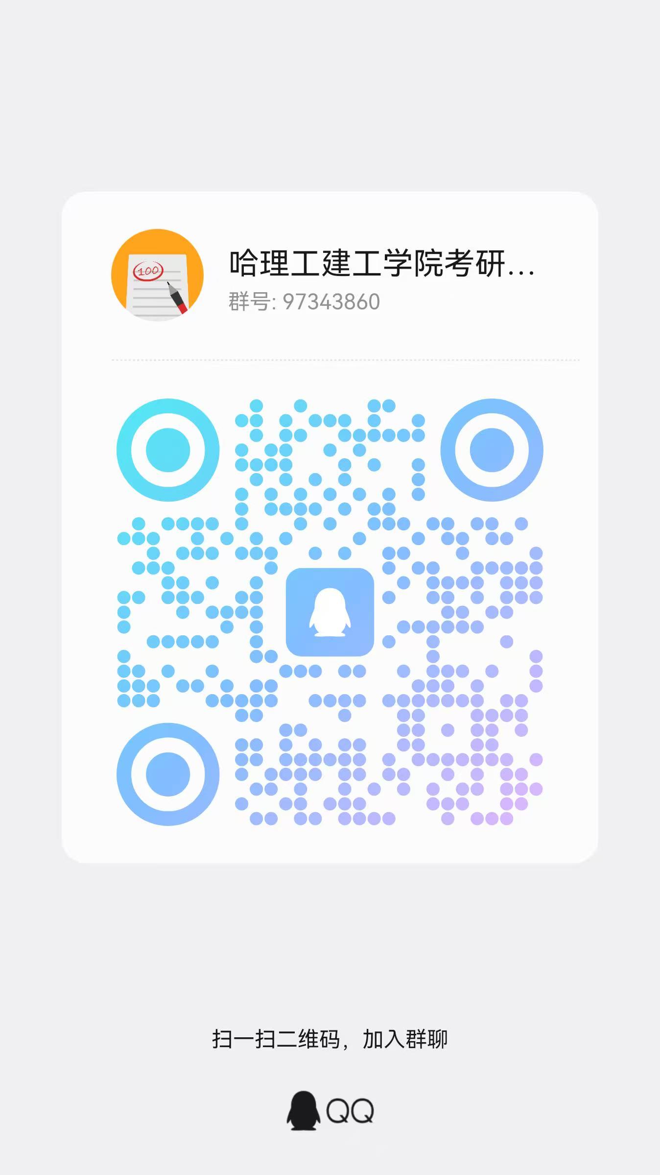 调剂咨询QQ群:97343860,群名称“哈理工建工学院考研咨询群(土木水利+力学)”